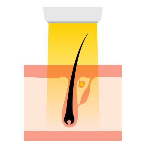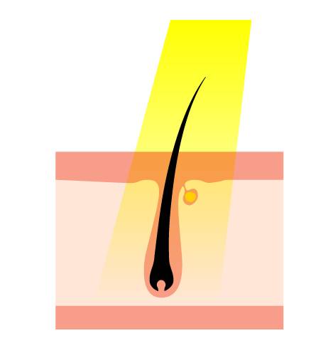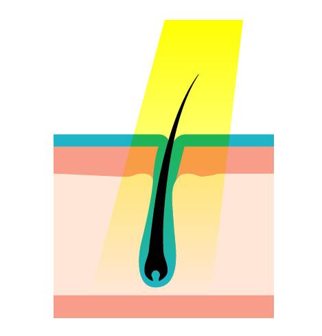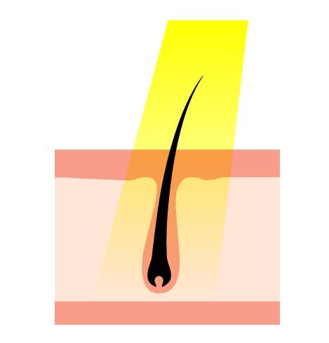 強い光で深部までレーザーで、毛の基となる毛母細胞にダメージを与える。